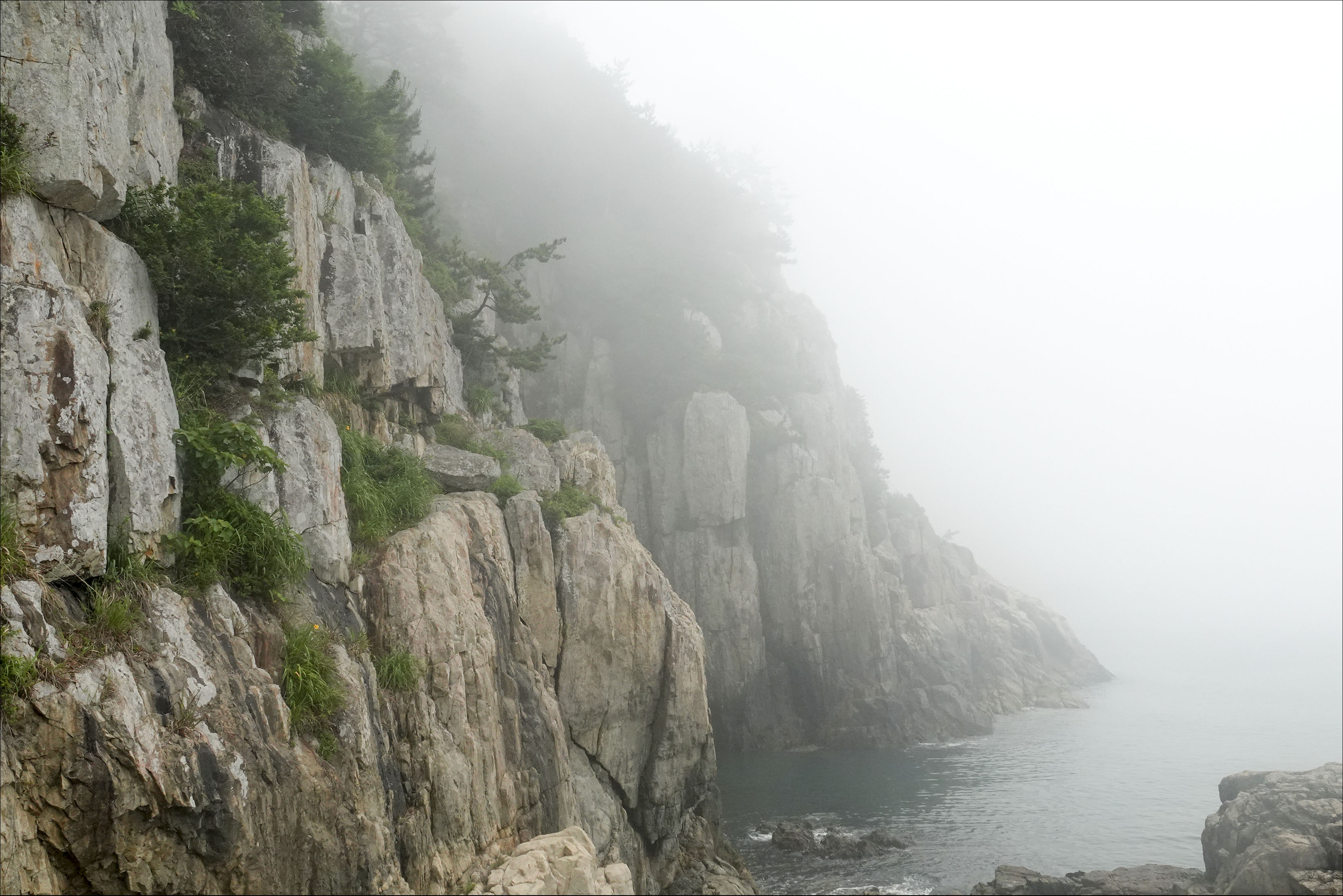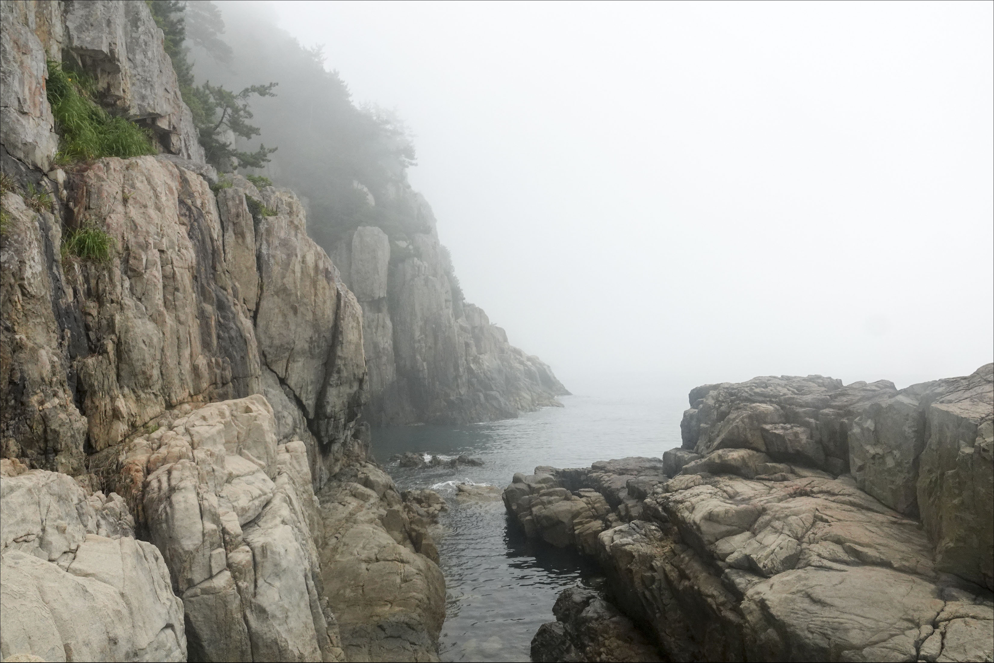 해안길도, 후박나무도, 갯바위도 안개에 먹혔다.