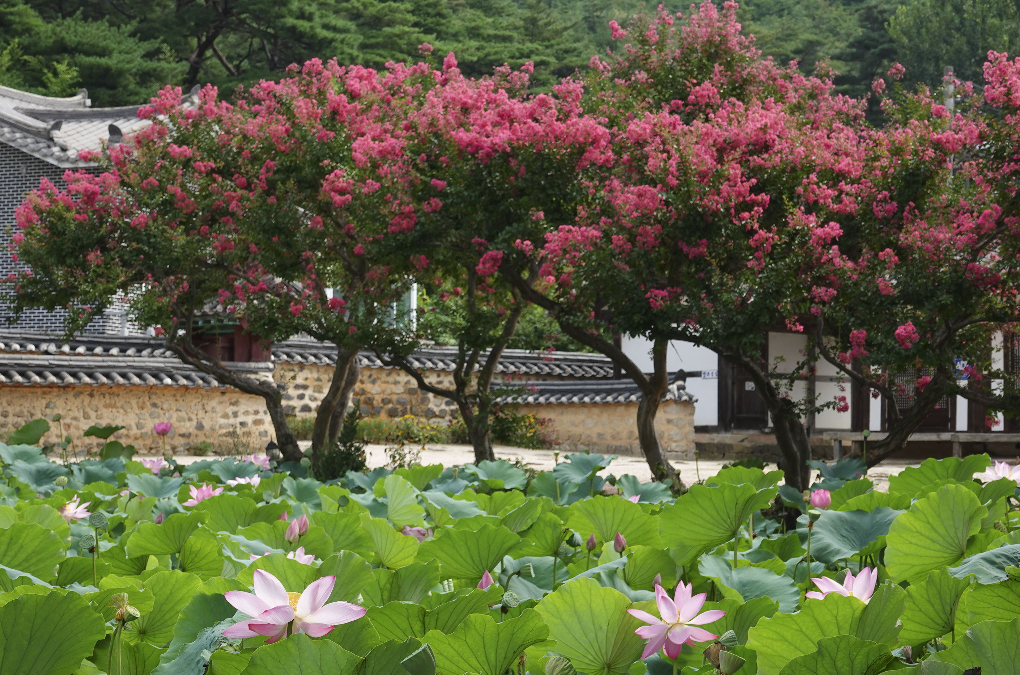 어디 그 뿐인가. 배롱나무 꽃도 몽글몽글 한창이다.