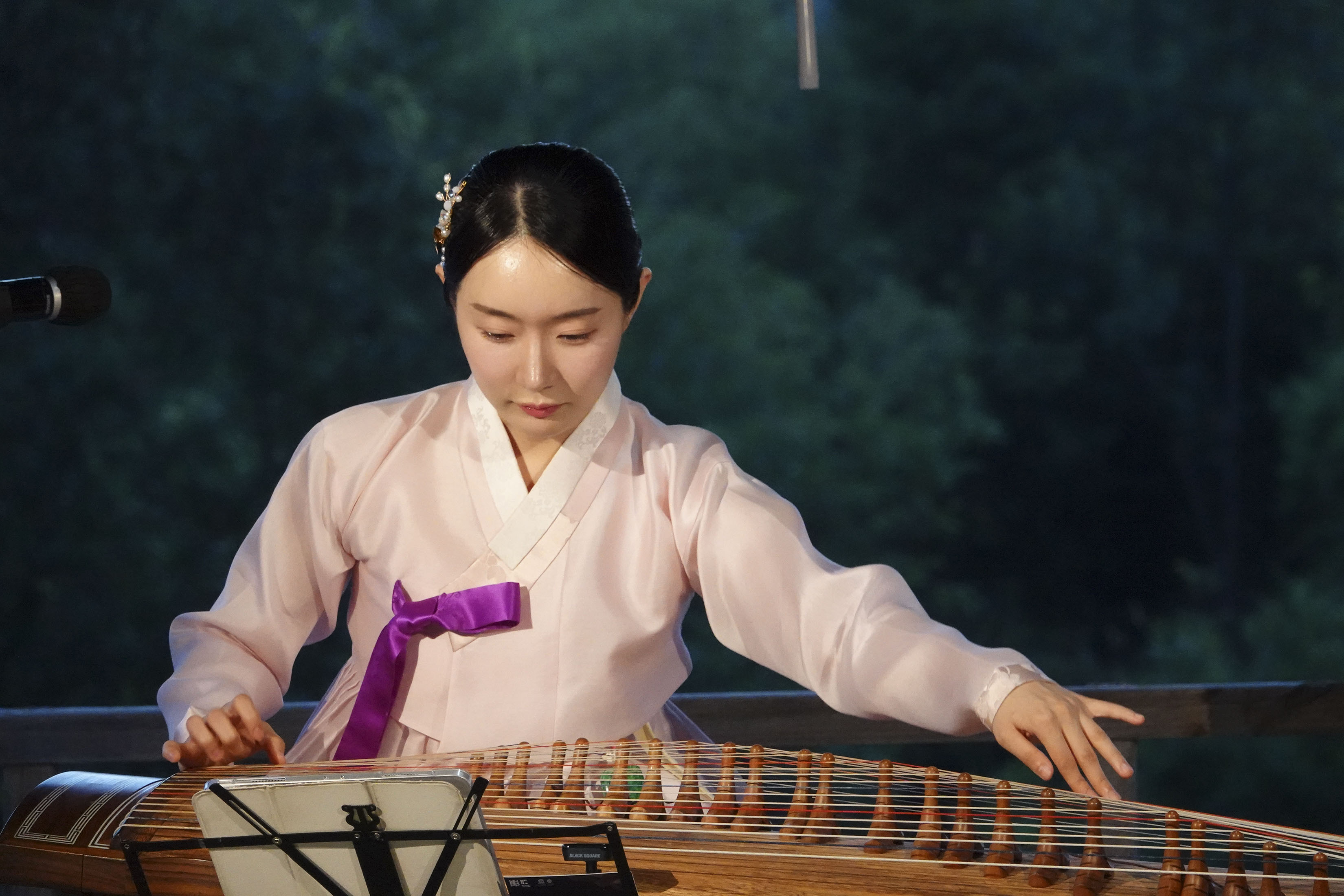 연주중인 가야금은 25현으로 12금 가야금을 개량한 악기.