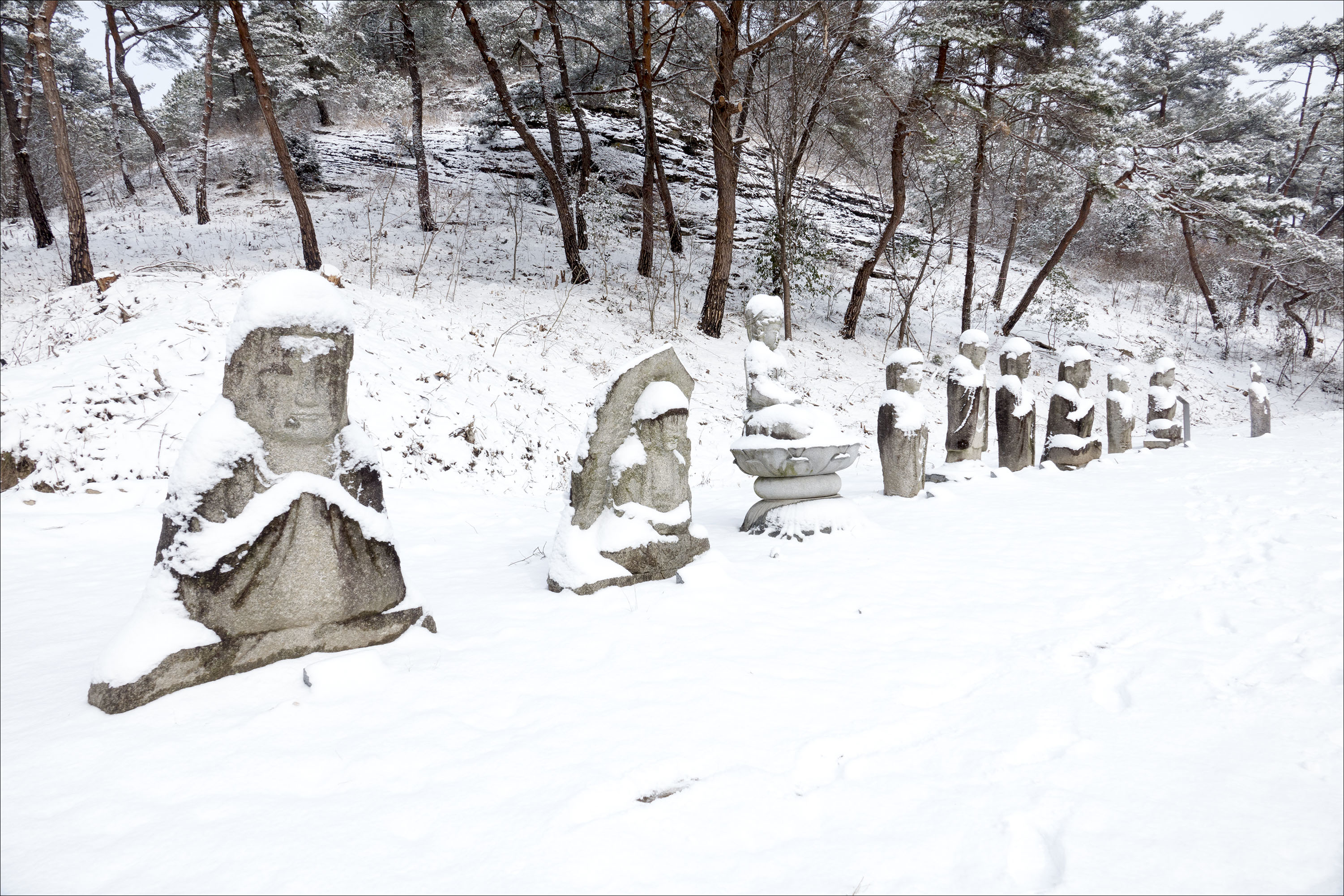 쏟아지는 눈발을 고스란히 맞고있는 석불들이 이채롭다.