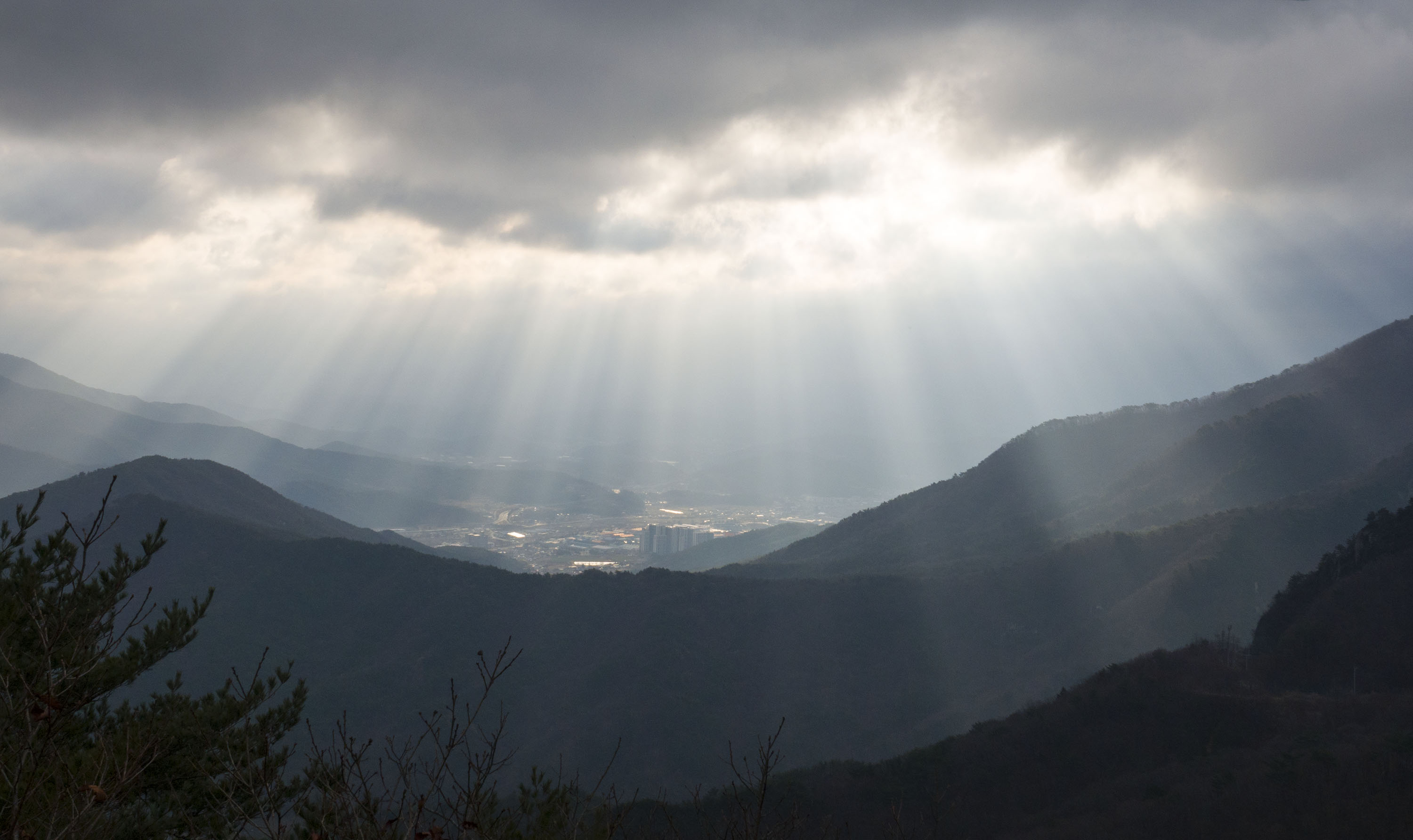 가지산 8부 능선이 면사포를 둘러쓴 모습만 잠시.....